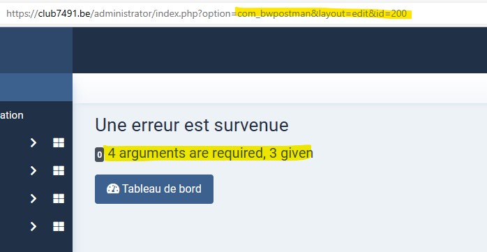 | Description | When trying to edit and modify a field in the subscriber's vcard When trying to add a new subcriber manually I get the error message " 4 arguments are required, 3 given " and then the table club7491_bwpostman_subscribers is locked | ||||